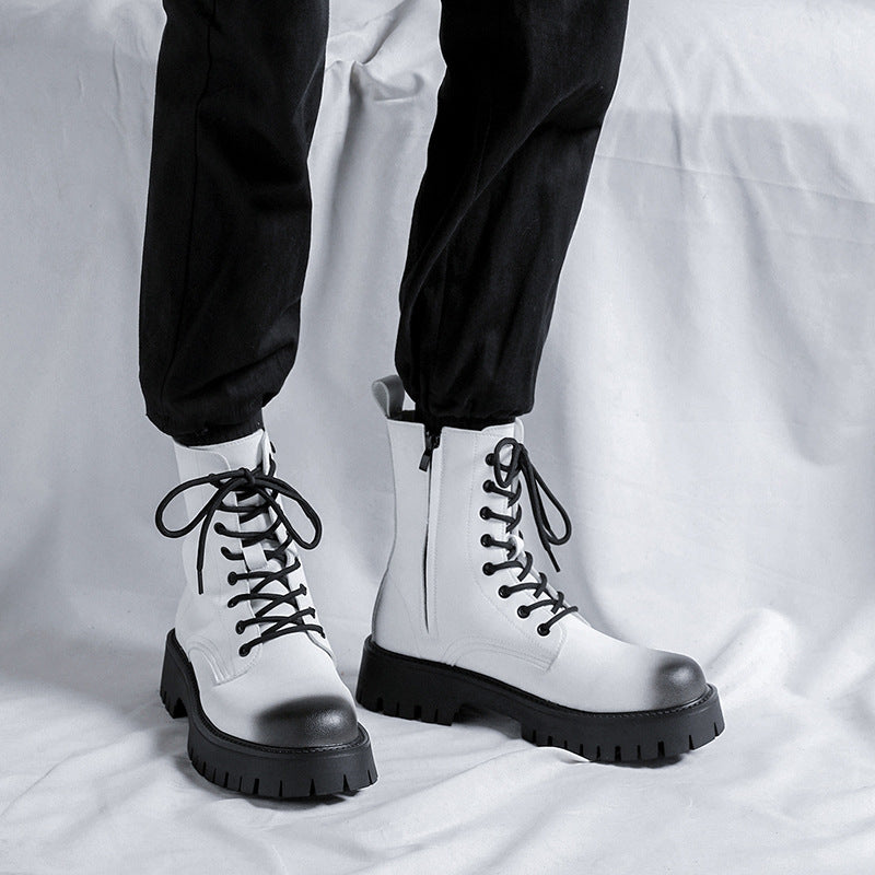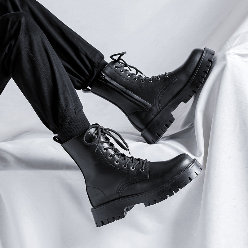 Mens Fashion Motorcycle Boots Party Nightclub Dress Black Genuine Leather Shoes High Top Cowboy Boot Handsome Boots