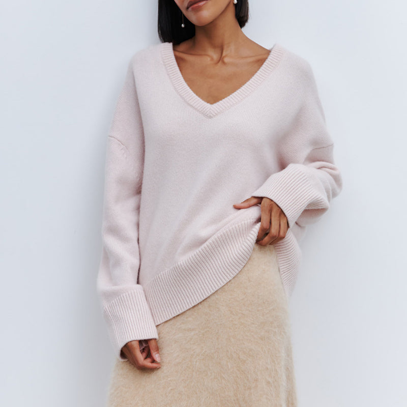 Oversized V-neck Sweater Women's Warm Casual Knitted Pullover Sweat