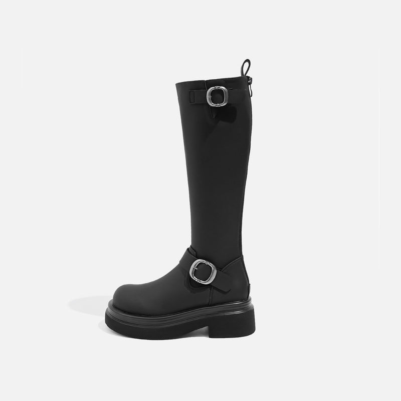 Winter Platform Slip On Women Knee High Boots Fashion Thick Heels Knight Long Booties Belt Buckle Ladies Shoes