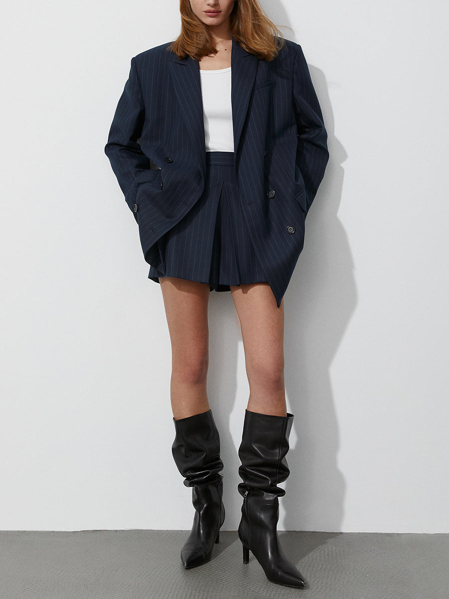Women Fashion Long Sleeve Pockets Blazers And Button Slim Skirts Sets