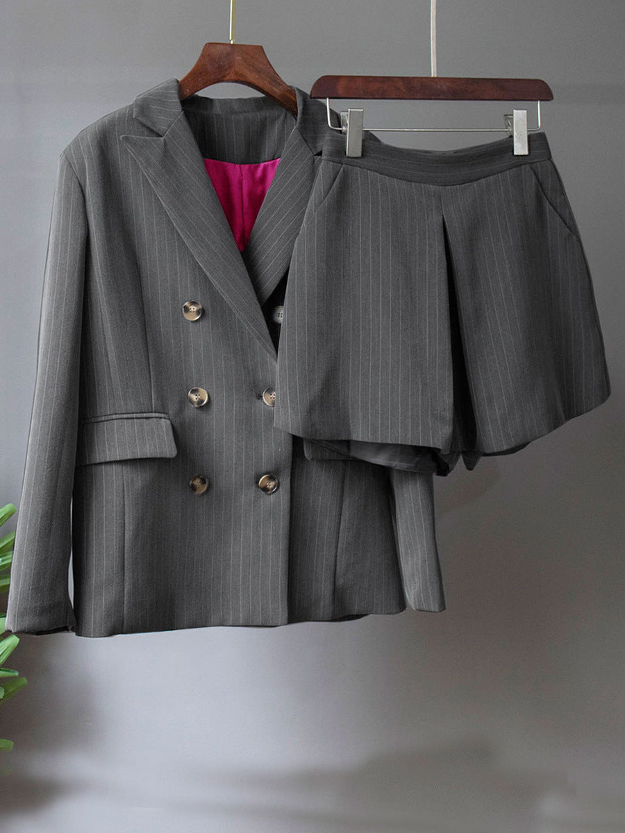 Women Fashion Long Sleeve Pockets Blazers And Button Slim Skirts Sets