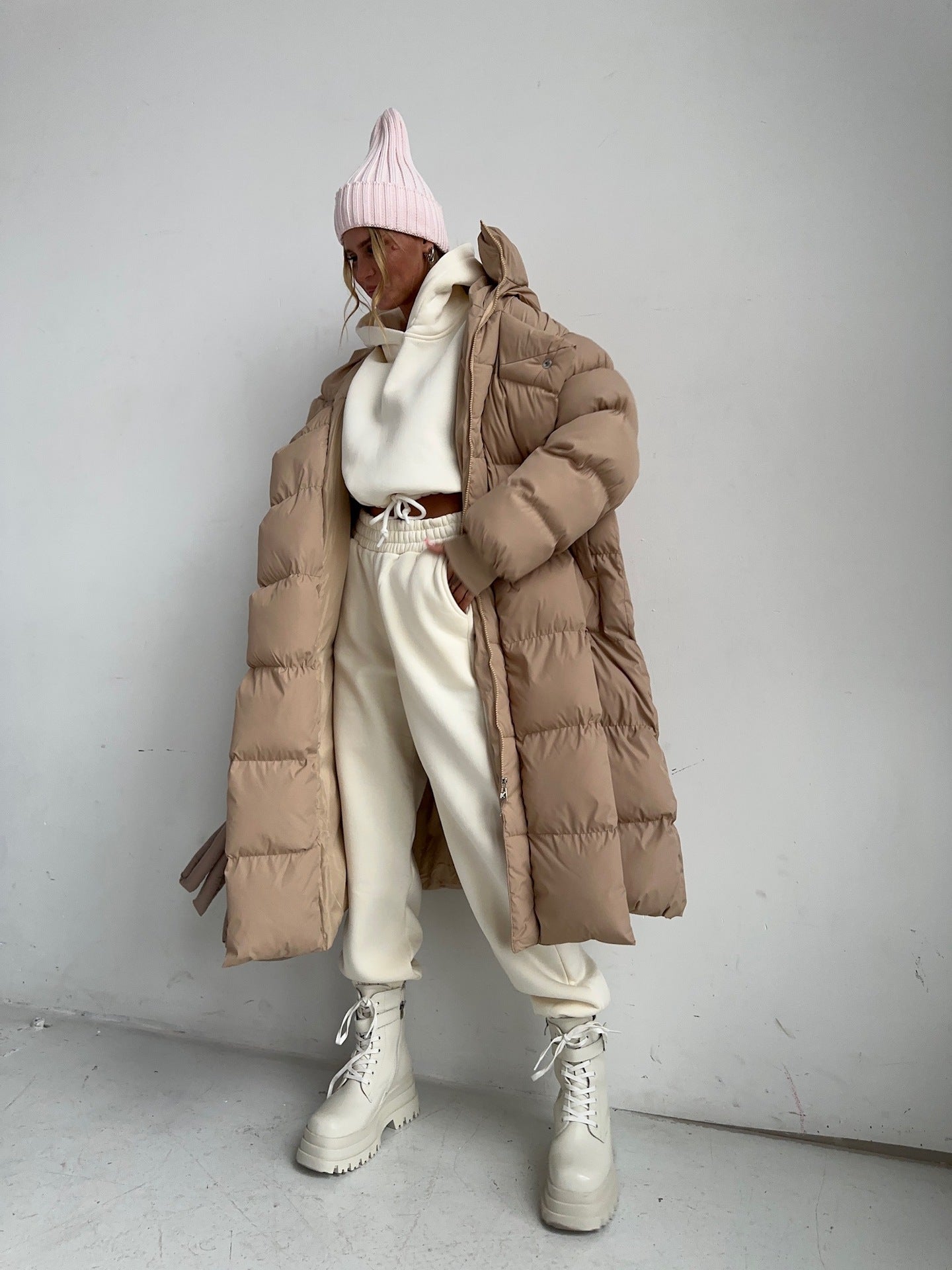 Women Outwear Hoodie Parkes Loose Pocket Patchwork Long Sleeve Casual Coat